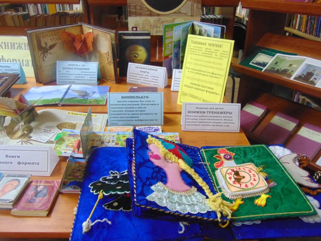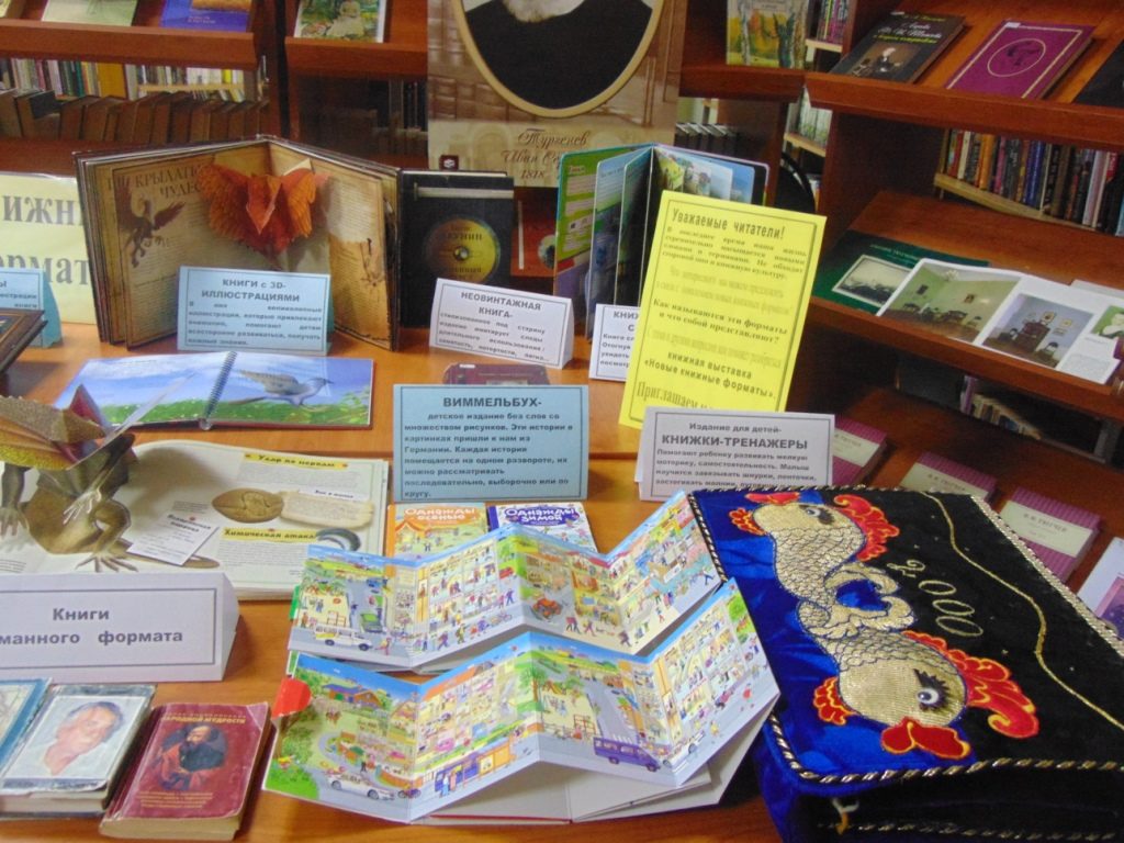 Современная реальность стремительно меняется, наполняясь новыми словами и терминами. Не обходит стороной она и книжную культуру. Как не утонуть в этом море “новизны”? Что интересного может предложить библиотека в связи с появлением новых книжных форматов? Как называются эти форматы и что собой представляют? Чтобы познакомить читателей с новыми форматами на абонементе подготовлена выставка, на которой представлены книги необычных форматов.