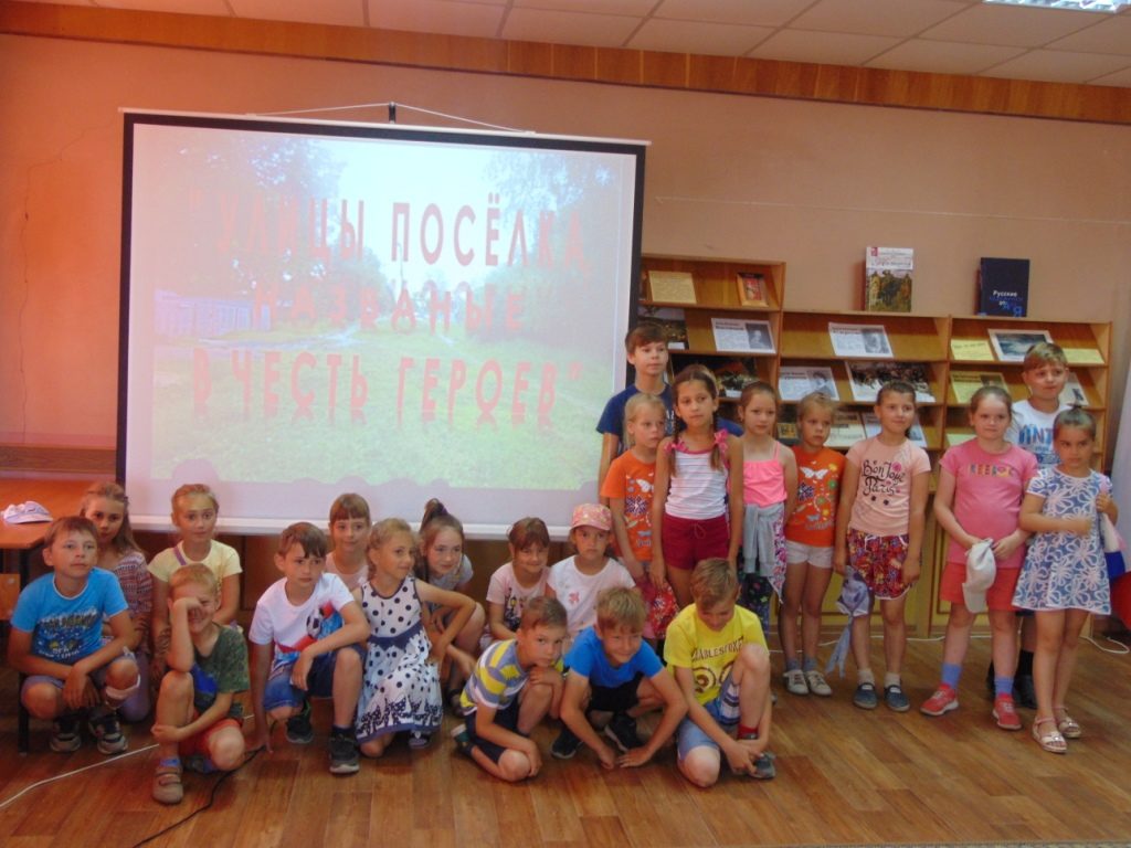 20 июня сотрудники межпоселенческой библиотеки провели час патриотизма «Улицы поселка, названные в честь героев» для ребят из летних школьных лагерей. Мальчишки и девчонки узнали, сколько улиц в нашем поселке, какая самая старая улица и какие улицы только начинают застраиваться. Ребятам было интересно узнавать улицы Навли на экране и знакомиться с биографиями героев, в честь которых они были названы. Школьники с удовольствием отвечали на вопросы видеовикторины и блицопроса.