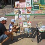 Прохожим предлагалась литература по кулинарии, рукоделию, консервации, детективы, любовные романы, фантастика и приключения, журналы.