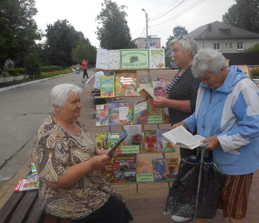 26 июля сотрудники библиотеки на центральной улице поселка развернули книжную выставку-совет «Мой маленький огород – здоровье и доход». Представленные книги и периодические издания были интересны как начинающим, так и опытным садоводам и огородникам. Выставка состояла из нескольких разделов.