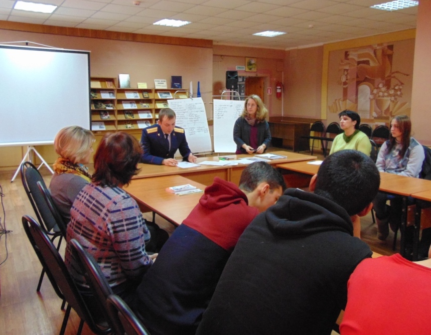 В Гражданском форуме приняли участие студенты Навлинского филиала Комаричского механико-технологического техникума, представители Следственного комитета и правоохранительных органов, специалисты Комиссии по делам несовершеннолетних, сотрудники библиотеки. Ведущая мероприятия, главный библиотекарь Брянской областной научной универсальной библиотеки им. Ф.И. Тютчева, Н.В. Нестерова осветила три подхода к решению проблемы подростковой преступности: ужесточение наказания, воспитание и просвещение, занятость и самореализация подростков. Наталья Владимировна пригласила всех участников к диалогу и предложила каждому высказать свою точку зрения «за» и «против» того или иного решения проблемы, указать сильные и слабые стороны каждого из подходов.