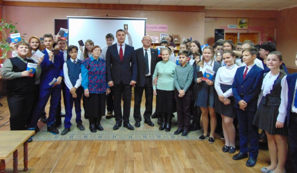 Быть гражданином России, ощущать себя частью огромной и сильной страны – это большая честь и гордость для каждого. Для 22 юношей и девушек этот день стал особым и торжественным: они получили свой главный юридический документ – паспорт гражданина Российской Федерации – из рук главы Навлинского района С.И. Мосина, главы администрации района А.А. Прудника, Почетных граждан Навлинского района: Заслуженного учителя школы РСФСР В.В. Пашуто и Отличника народного просвещения Н.Д. Кирилловой.