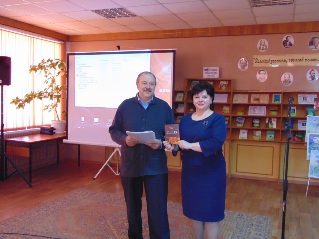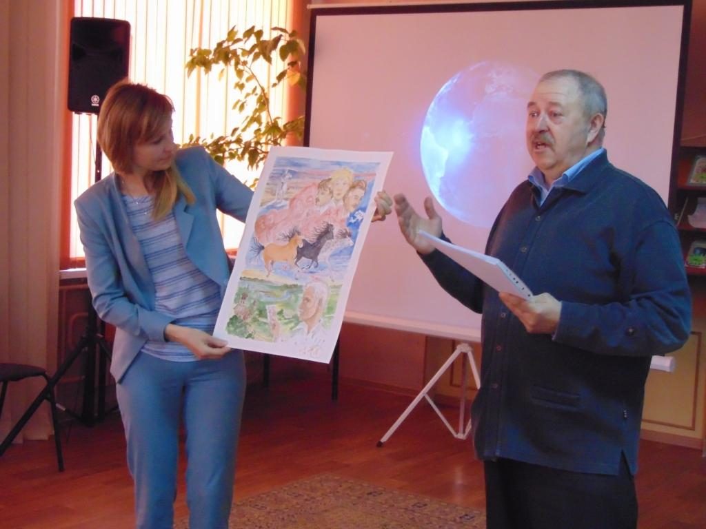 На встрече с читателями библиотеки он познакомил всех со своим творчеством, прочитал стихи “Кони жизни”, “Течет Навля-речка” “Русалочьи чары” и другие, представил на суд зрителей рисунки к произведениям А. К. Толстого и А. Грина. Анатолий Михайлович посвятил библиотеке стихотворение “Давайте собираться за столом” и подарил сборник стихов “От блокнота до Интернета”