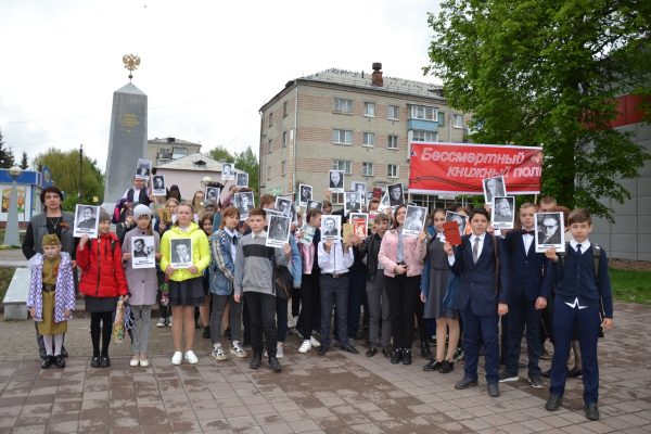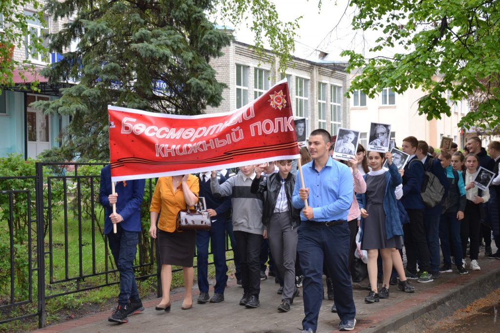 В ней приняли участие школьники, учителя, читатели, библиотекари. В руках участники акции пронесли по улицам поселка портреты и книги писателей-фронтовиков.