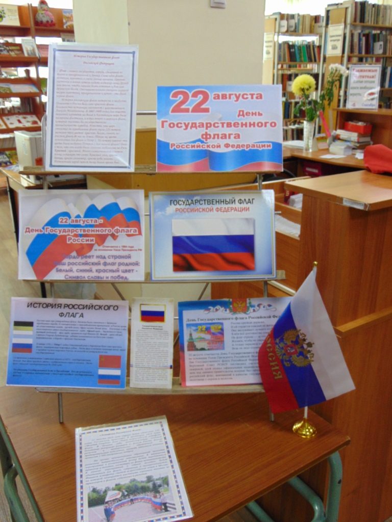 В Межпоселенческой библиотеке оформлена выставка литературы “Гордо реет флаг Российский”.