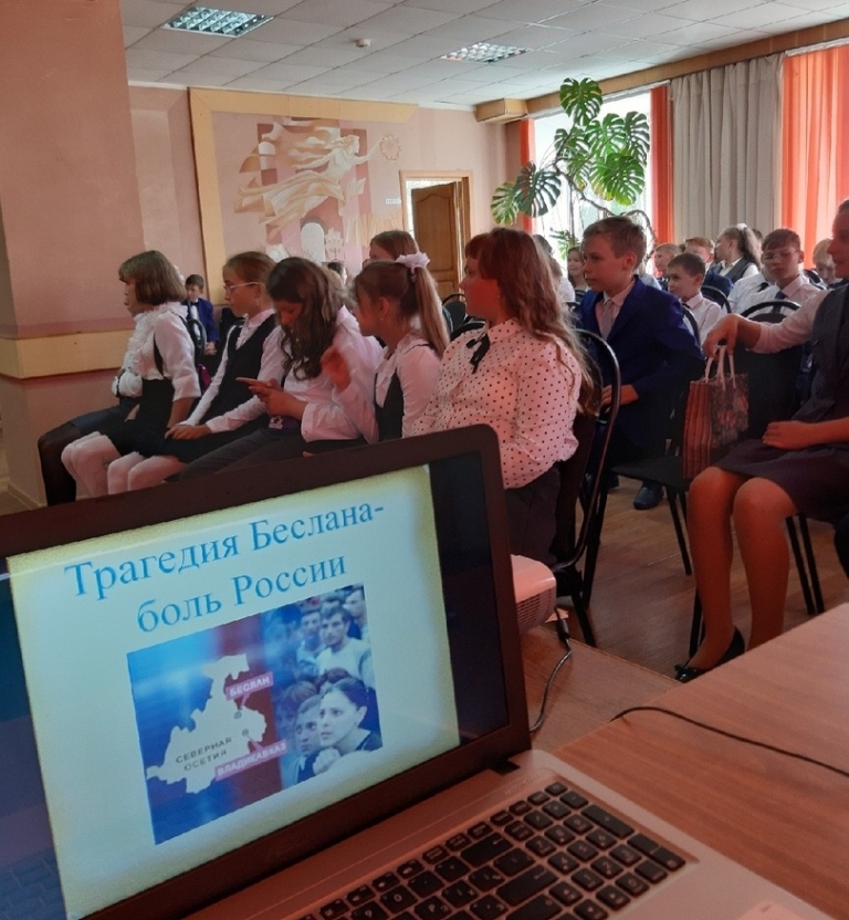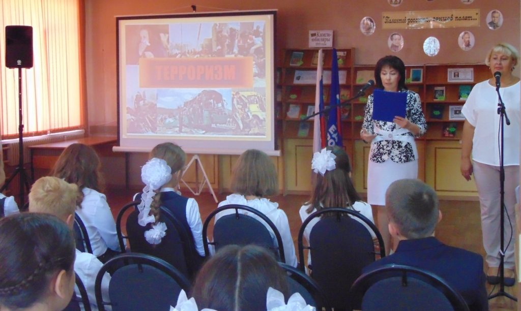Накануне этой даты для учащихся 6-8 классов СОШ №1 был проведён час памяти- «Горький след террора». Сотрудники библиотеки познакомили школьников с событиями в Беслане, рассказали о терроризме и террористах, какой страх и ужас они приносят мирным жителям всей планеты, какие огромные жертвы, боль и слёзы несут всему человечеству. Прочувствовать боль таких событий помогли видеоролики, посвященные терроризму.