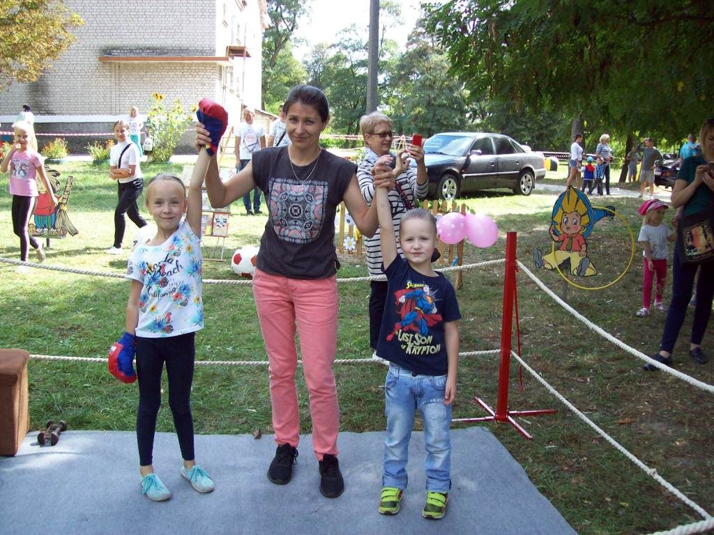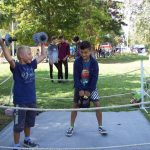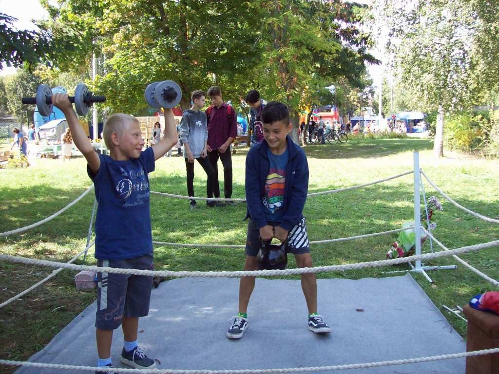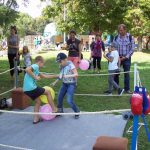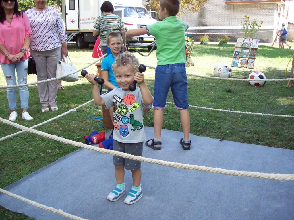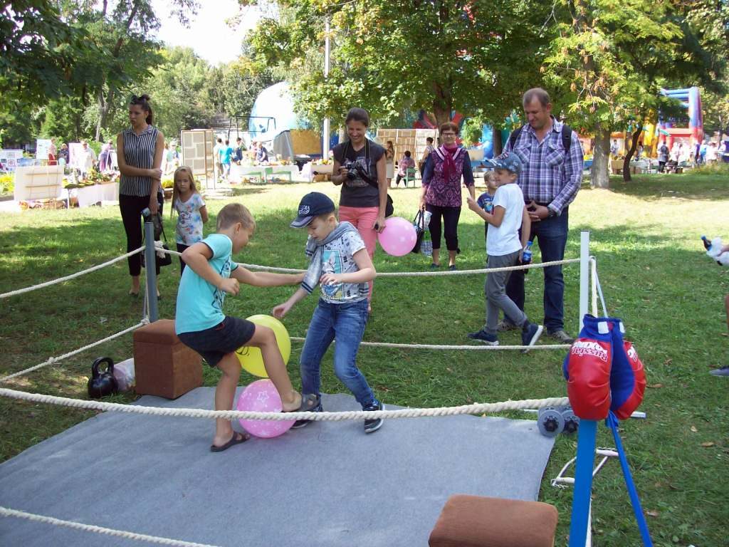 На детской спортивной площадке «Сильнее, быстрее, умнее!» центром которой был ринг, ребята участвовали в состязаниях на ловкость, скорость и внимательность. Также на площадке проходили соревнования по метанию шаров в мишень. Проводились подвижные игры: «Прыгалка», «Мяч», «Обруч», «Резиночка». За победу в состязаниях дети получали заслуженные награды и сладкие призы.