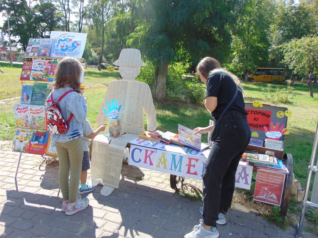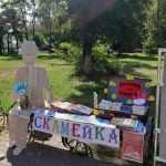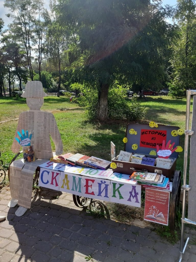Межпоселенческая и Детская библиотеки организовали для гостей праздника “Читающую скамейку”, где можно было почитать книги и периодику, сфотографироваться с “газетным человеком”. Большой интерес у посетителей мероприятия вызвали «Истории из чемодана», где были представлены книги разных жанров. Эти книги все желающие могли взять с собой. Более 20 книг нашли своих читателей.