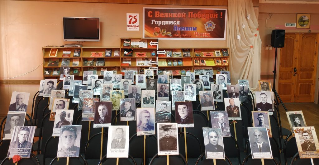 На протяжении нескольких лет в День Победы по улицам городов и поселков России проходит шествие “Бессмертного полка”. Сотни тысяч людей с гордостью несут портреты своих родственников-фронтовиков, отдавая дань памяти их подвигу. К сожалению, в юбилейный год 75-летия Великой Победы 9 мая акция “Бессмертный полк” пройдет в другом формате, а шествие состоится позже. Библиотека Навлинского района присоединилась к онлайн-акции “Бессмертный полк”, а также в актовом зале библиотеки организован “Бессмертный полк” участников Великой Отечественной войны – собраны портреты ветеранов, предоставленные читателями библиотеки.