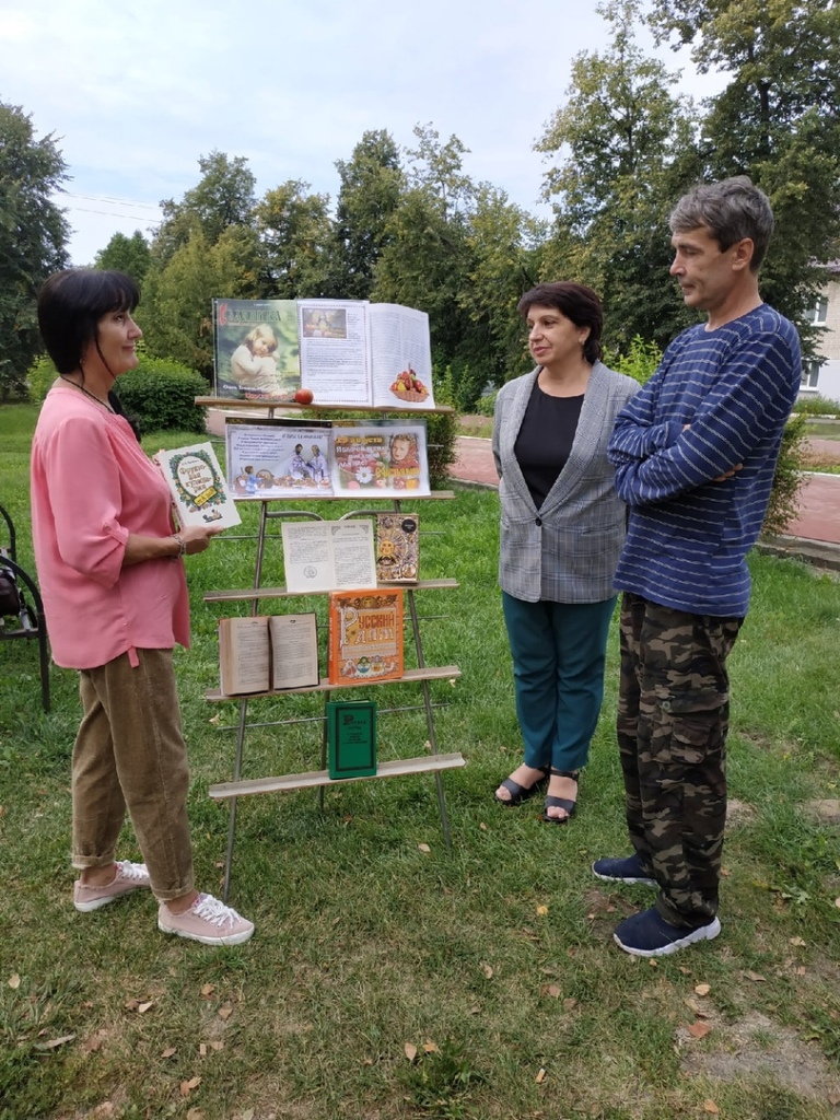 В этот день сотрудники Межпоселенческой библиотеки подготовили и провели в читальном зале под открытым небом интересную беседу у выставки «Яблочный спас – праздник для нас». Мероприятие проходило на одной из оживленных улиц поселка. Библиотекари рассказали об истории праздника, о приметах, связанных с этим днем, а также познакомили с литературой, представленной на выставке.