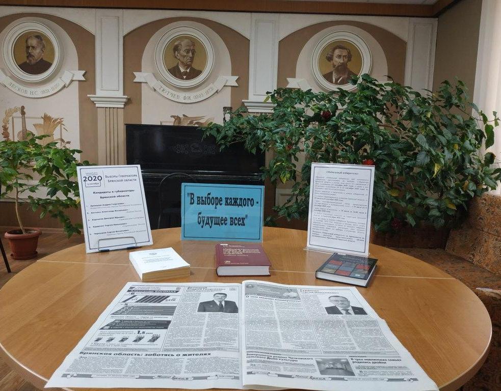 13 сентября в Брянской области состоятся выборы Губернатора. В Навлинской межпоселенческой библиотеке подготовлена информационная выставка «В выборе каждого – будущее всех». На ней представлены информационные ресурсы, которые могут быть полезны участникам выборов: информация о кандидатах в губернаторы, законы о выборах, правила голосования, основы избирательного права и другие.