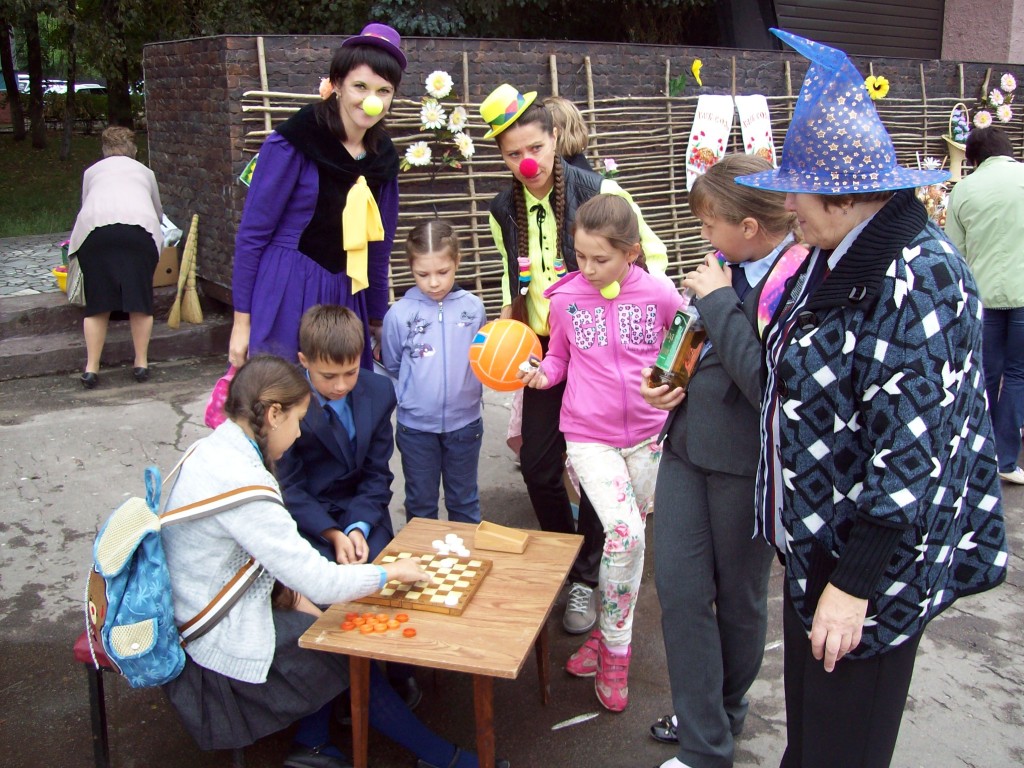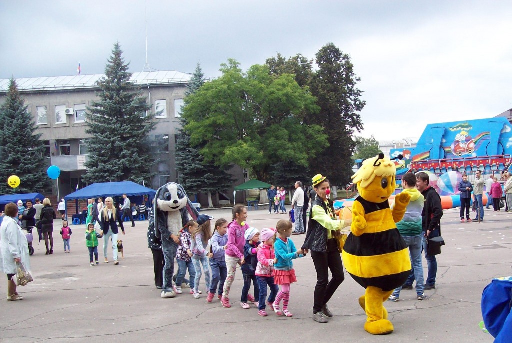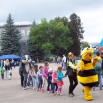 Для детей была оформлена детская площадка «Игры нашего двора», украшенная разноцветными шарами, игрушками и живыми цветами. Ребят встречали клоунессы Веселинка и Смешинка, которые проводили с ребятами различные игры, викторины и веселые конкурсы. Помогали развлекать детей сказочные герои – пчела Майя и заяц Хваста. На площадке стояли столики с настольными играми, дети и их родители с удовольствием играли в мяч, крутили обручи, прыгали на скакалках и играли в классики. Паровозик «Дружба», созданный самими ребятами, весело «катался» по праздничной площади и приглашал присоединяться всем желающим. Все участники получали сладкие призы и аплодисменты от веселых клоунесс.