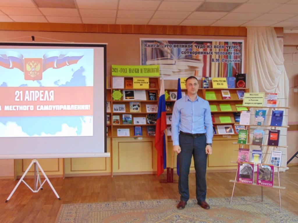 В рамках Дня местного самоуправления в Межпоселенческой библиотеке Навлинского района для обучающихся Гимназии №1 п. Навля был подготовлен и проведен информационный час «Местное самоуправление сквозь призму истории». Ребята познакомились с историей местного самоуправления от античности до наших дней, узнали, как развивалось и реформировалось местное самоуправления в России от новгородского вече до земских реформ XIX века, какие изменения были в советское время и что собой представляет местное самоуправление в современной России.
