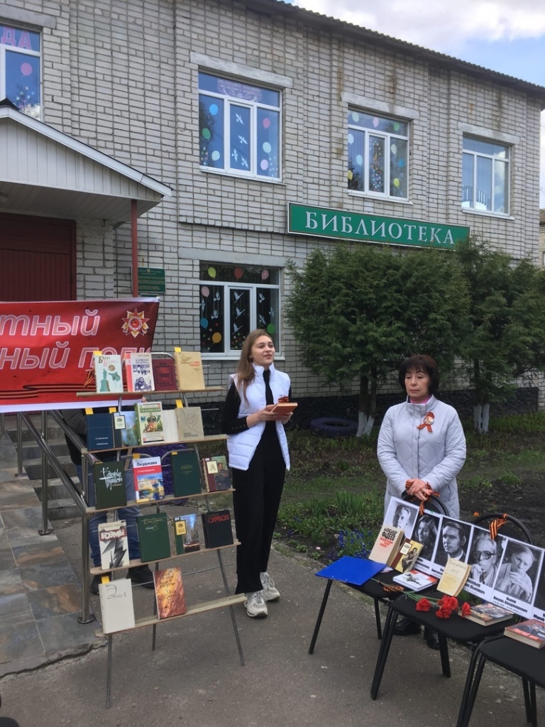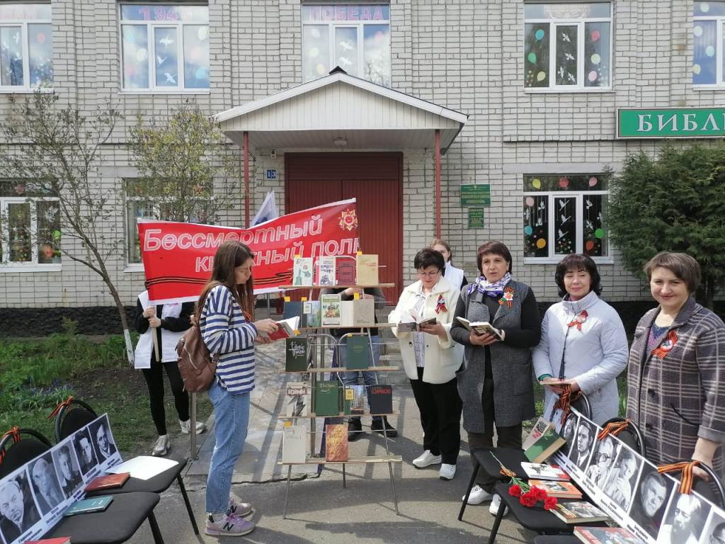 В преддверии великого и светлого праздника – Дня Победы, сотрудники межпоселенческой библиотеки провели акцию “Бессмертный книжный полк. Читаем стихи поэтов-фронтовиков”. На улице была организована выставка литературы и выставлены портреты писателей и поэтов-фронтовиков. Жители поселка, молодежь с удовольствием приняли участие в акции и читали полюбившиеся им стихи поэтов военной поры: Юлии Друниной, Ольги Берггольц, Булата Окуджавы, Мусы Джалиля, Александра Твардовского и многих других, запечатлевших в поэтических строках подвиг наших дедов и прадедов, спасших мир от фашизма.