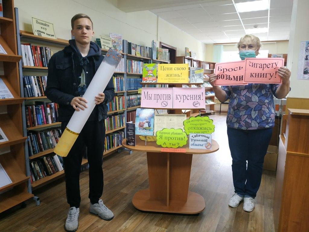 31 мая ежегодно отмечается Всемирный день без табака. В рамках этого Дня сотрудники Межпоселенческой библиотеки провели акцию «Долой из жизни никотин – быть здоровыми хотим!». Библиотекари рассказали о вреде курения, вспомнили пословицы и поговорки о пагубных привычках, провели интересные конкурсы. Участники акции познакомились с выставкой–призывом «Жить без табака!». В ходе акции участники поняли, что лучше провести время с книгой, чем с сигаретой, а бросить курить – это реально. В конце встречи свершился импровизированный суд над сигаретой, а также каждый участник акции получил листовки и закладки с информацией о вреде курения.