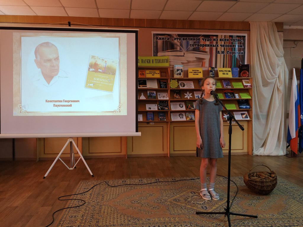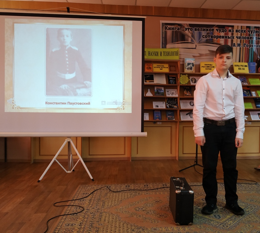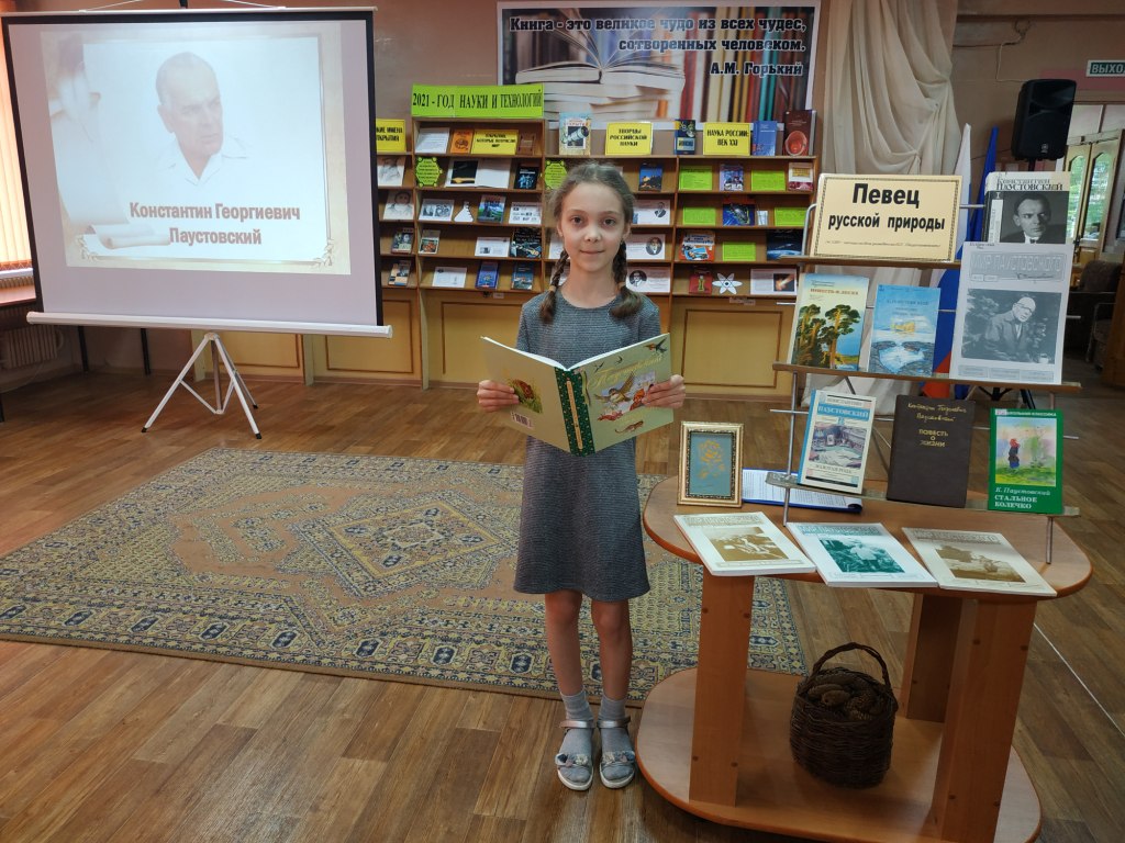 Вниманию участников мероприятия была представлена выставка литературы «Певец русской природы», знакомящая с произведениями К.Г. Паустовского для взрослых и детей.