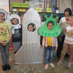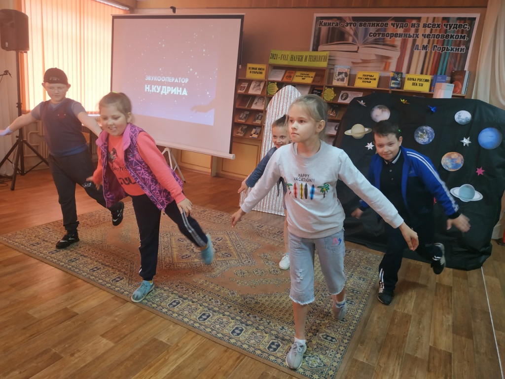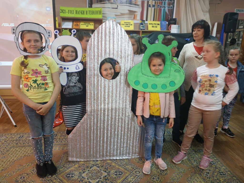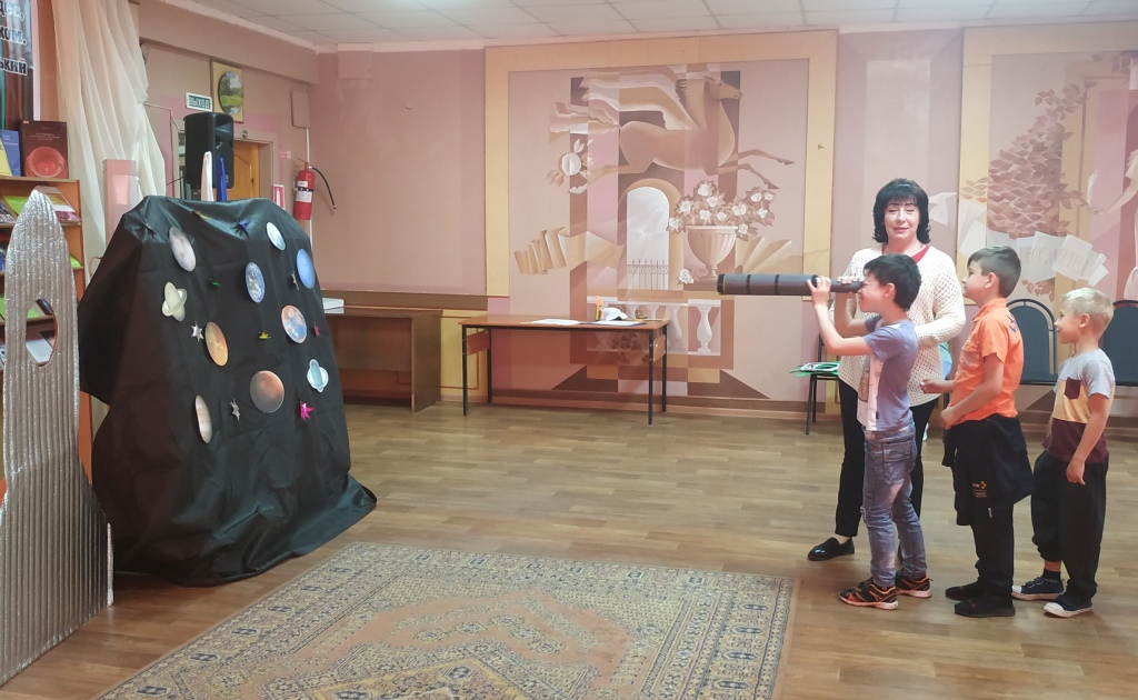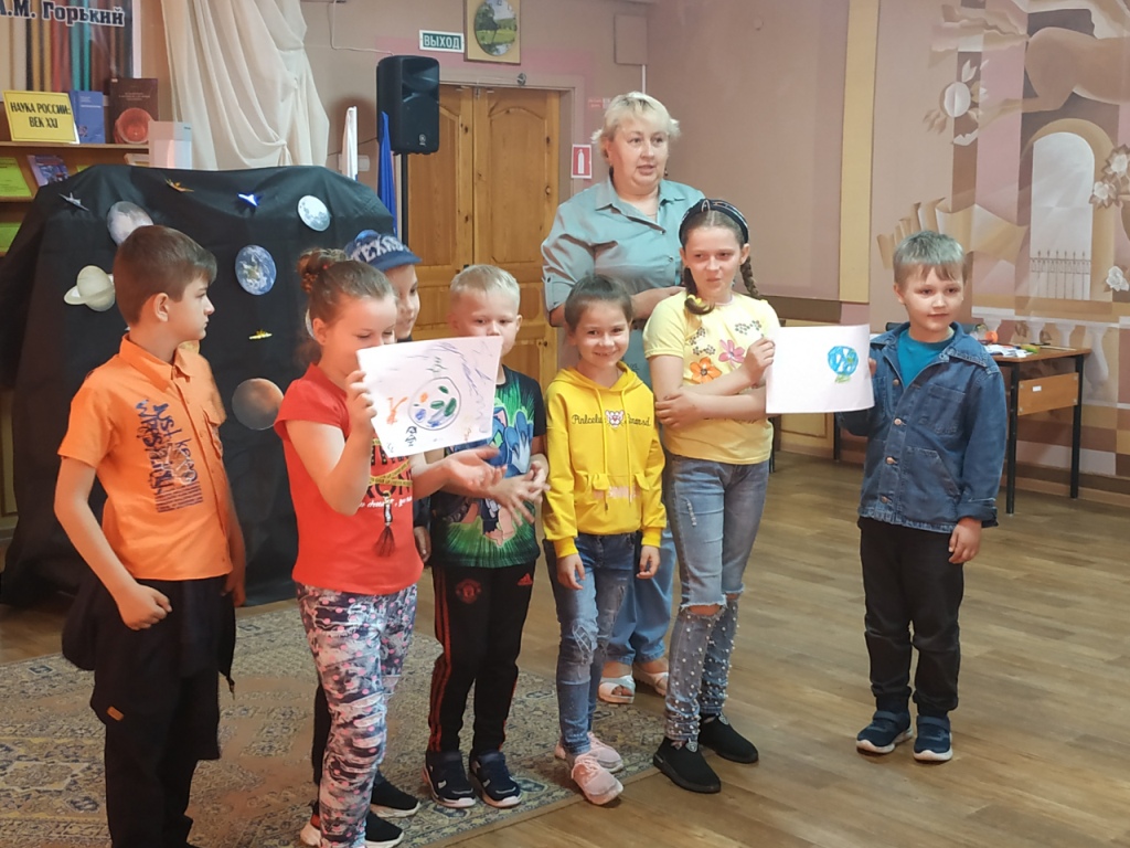 Переступив порог актового зала, мальчишки и девчонки оказались в импровизированном космическом корабле и отправились в настоящий полет по нашей галактике. Они узнали интересные факты о планетах солнечной системы, а также о первом полете человека в космос. Самые отважные и ловкие участвовали в веселых играх. Ребята представили себя в роли инопланетян, и как настоящие космонавты прошли испытания невесомостью. Правильно добавили слова в конкурсе «Космический отдых» и без труда отгадали все загадки. Дети с удовольствием отвечали на вопросы викторины «Космические эрудиты». Весело и задорно прошел конкурс «Найди общий язык с инопланетянином», во время которого с помощью мимики и жестов показали строки детских стихотворений. Школьники проявили свои художественные способности и красиво нарисовали нашу планету.