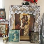 Внутренний интерьер Казанской церкви с. Гремячее, у алтаря – настоятель храма, отец Александр (Никольский).