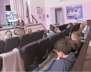 На мероприятие пришли ребята из школьного лагеря вместе с учителями. Первая часть проходила в помещении библиотеки. Это был час речевого этикета «Сила слова».