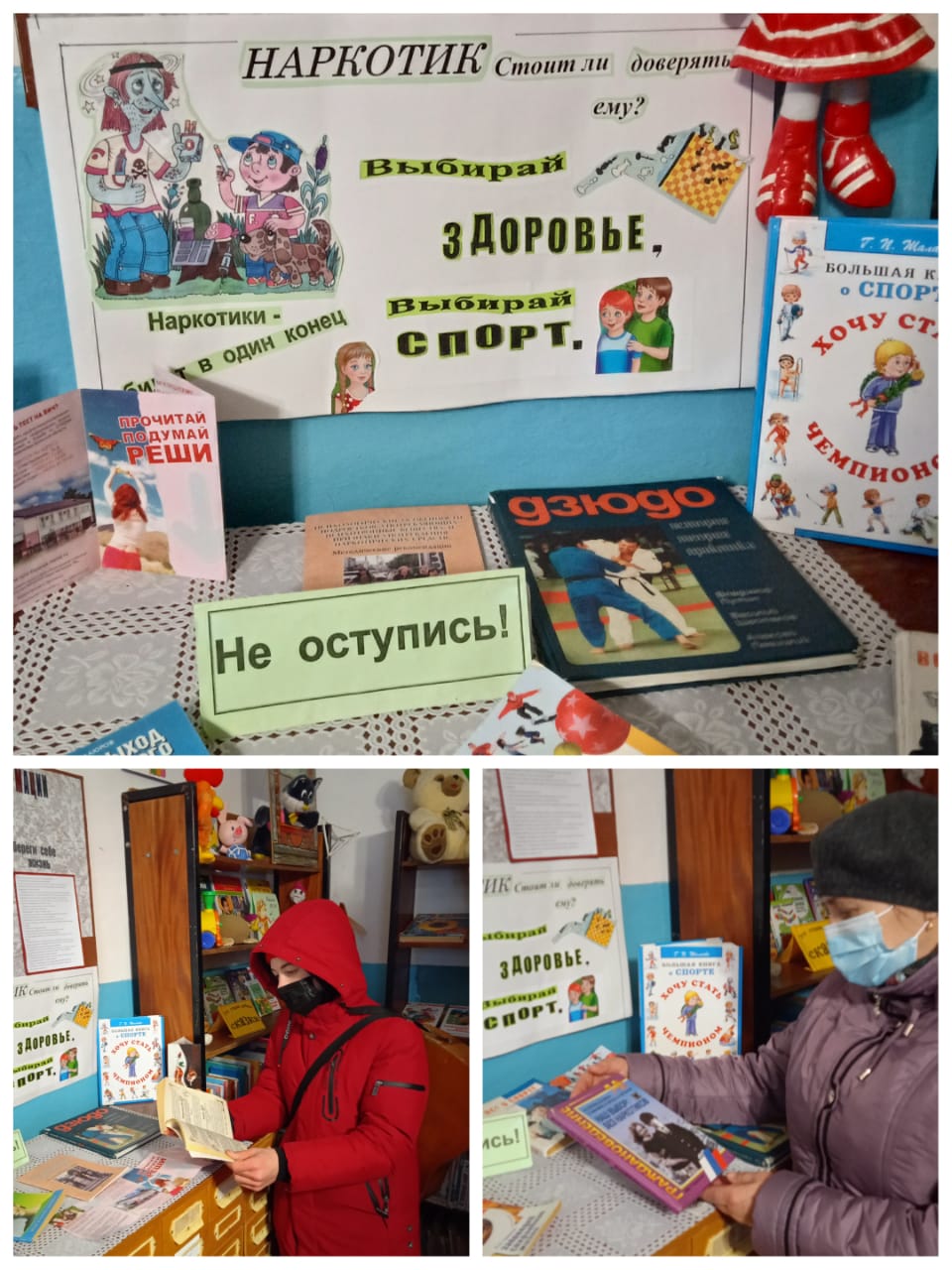 В рамках Брянского областного антинаркотического месячника “Брянщина – жизнь без наркотиков” во Вздруженской библиотеке оформлена выставка-предупреждение “Не оступись!”, которая рассказывает о вреде наркотиков и знакомит с книгами о спорте и здоровом образе жизни”