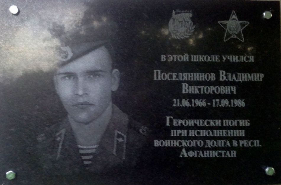 7 мая 2015 года, в канун празднования 70-летия Великой Победы состоялось торжественное открытие мемориальной доски в честь воина-интернационалиста Поселянинова Владимира Викторовича, погибшего в Афганистане в 1986 году при исполнении воинского долга. Мемориальная доска установлена на фасаде здания школы, в которой когда-то учился Володя.