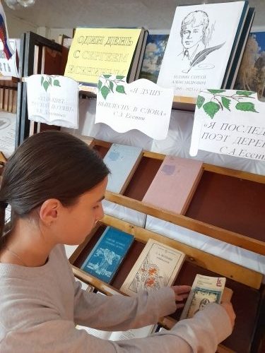 Сергей Александрович Есенин — известный русский поэт, тончайший лирик, волшебник русского пейзажа, удивительно чуткий к земным краскам, звукам и запахам. Есенин был большим и смелым мастером стиха. Читательская любовь к Есенину велика. Ко дню рождения  поэта  в Бяковской библиотеке открыта экспозиция, где можно познакомиться с различными изданиями произведений поэта, открывающими мир больших чувств, переживаний поэта, его раздумий о судьбах Родины, также представлен критический материал о творчестве поэта, публикации о жизни С.А. Есенина. Школьники и посетители  библиотеки с удовольствием вспоминали и читали стихи любимого поэта.