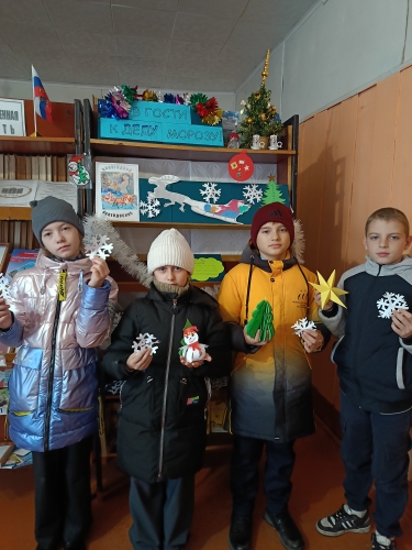 Ко дню рождения Деда Мороза читатели Бяковской библиотеки приготовили подарки. Мы старались! Снеговик, снежинки и ёлочка готовятся к встрече Нового года!