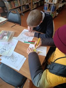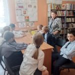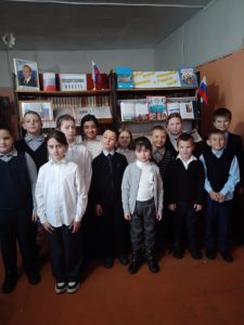 Для школьников библиотекарь подготовила беседу-викторину «Российский воин уважения достоин». По ходу рассказа о становлении и развитии вооружённых сил России ребятам задавались вопросы: что такое «конница»? что такое «тачанка»? как назывался головной убор красных конников? Что называют «субмариной»? Ребятам предлагалось назвать армейские знамёна;  объяснить, почему самое главное знамя на военных парадах – Знамя Победы; расшифровать аббревиатуры названий некоторых родов войск (ВДВ, ВМФ, ПВО и др.)