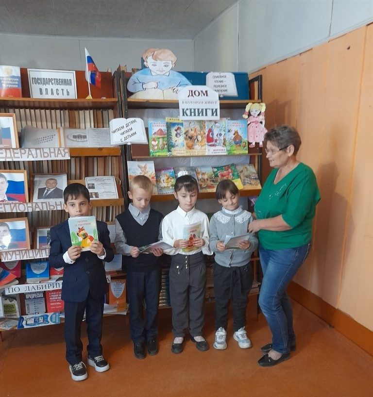 Во вторую учебную неделю для ребят 1 класса прошла ознакомительная, познавательная и очень интересная экскурсия в сельскую библиотеку. Маленькие школьники познакомились с основными понятиями – библиотека, книжный фонд, отделы библиотеки, сформировали и закрепили первичные навыки самообслуживания в условиях библиотеки, умение самостоятельно ориентироваться в мире книг. Библиотекарь познакомила детей с правилами поведения в библиотеке. Дети с радостью знакомились с  новыми для них детскими книгами, показывали свои знания в мире сказок, отвечая на вопросы викторины, подготовленной библиотекарем.