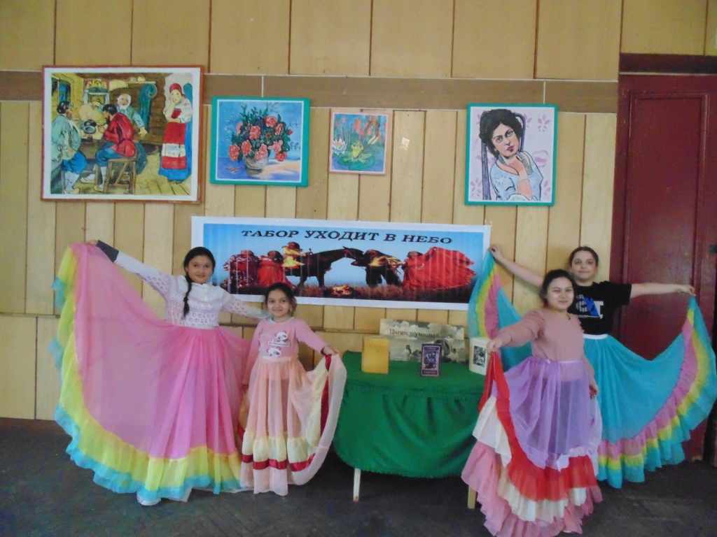 В рамках празднования Дня цыган в Алтуховском ДК, совместно с библиотекой, была проведена литературно-музыкальная композиция «Табор уходит в небо…», где звучали их цыганские народные песни, частушки в исполнении Федоренковой Л. и Кириченко М., загадки, а участники танцевального кружка «Ромалэ» увлекли зрителей своими искрометными танцами. В ходе мероприятия школьники познакомились с легендой об истории этого народа, читали цыганские народные сказки, провели обзор произведений, где описывается этот народ.
